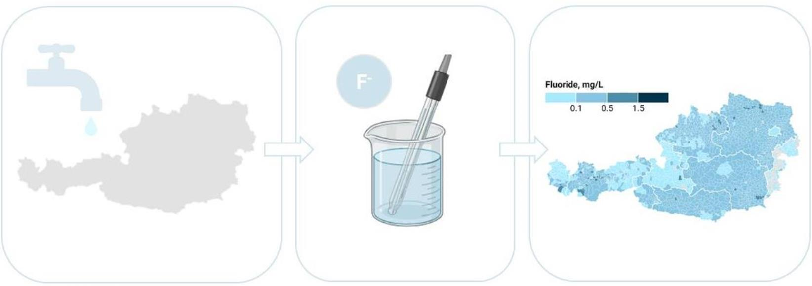 - Nell, A.; Ali, N.; Zizlavsky, A.; Klausberger, E.; Losert, K.; Reichenfelser, K.; Eder, A.; Moritz, A. Fluoridgehaltuntersuchung des Trinkwassers in Österreich 2007. Stomatologie 2008, 105, 161–166. [Google Scholar] [CrossRef]