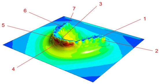 In the simulation setup, the edges of the PETG sheet were defined as pressure boundaries (Figure 3a), while the mold and sheet geometries were assembled and oriented to ensure alignment between the pressure direction and mold surface normal (Figure 3b–d). The simulation was conducted to capture the deformation behavior and thickness changes in the PETG sheet during the thermoforming process. The resulting thickness distribution obtained from the simulation was validated against physical measurements taken from fabricated clear aligner samples. To evaluate the accuracy of the simulation, the relative error was calculated using the following equation: