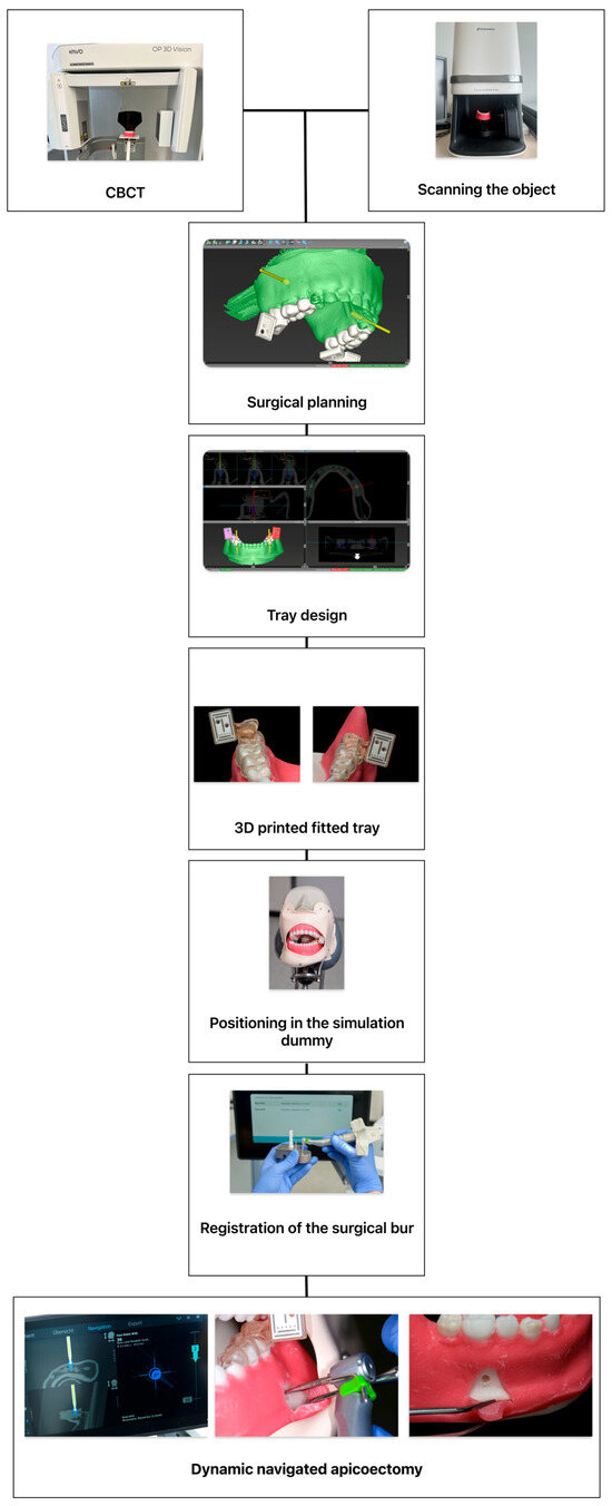 - Aldahmash, S.A.; Price, J.B.; Mostoufi, B.; Griffin, I.L.; Dianat, O.; Tordik, P.A.; Martinho, F.C. Real-time 3-dimensional Dynamic Navigation System in Endodontic Microsurgery: A Cadaver Study. J. Endod. 2022, 48, 922–929. [Google Scholar] [CrossRef] [PubMed]