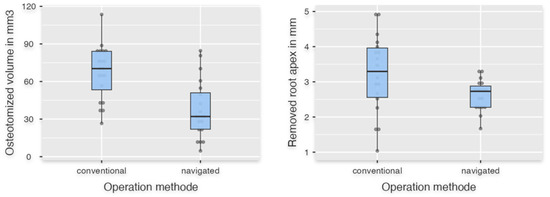 | Resected bone volume in mm [3] | Conventional | 20 | 67.23 | 21.57 |