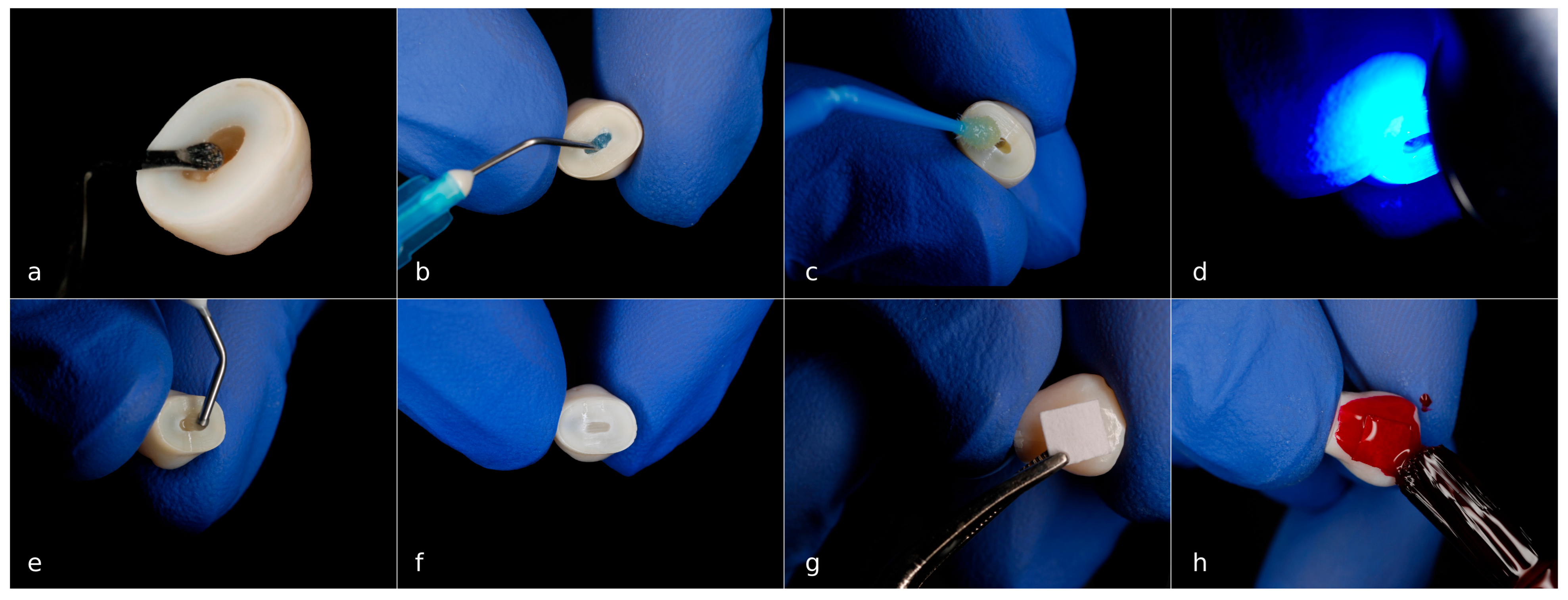 - Toledano, M.; Osorio, R.; Osorio, E.; Prati, C.; Carvalho, R.M. Microhardness of acid-treated and resin infiltrated human dentine. J. Dent. 2005, 33, 349–354. [Google Scholar] [CrossRef]