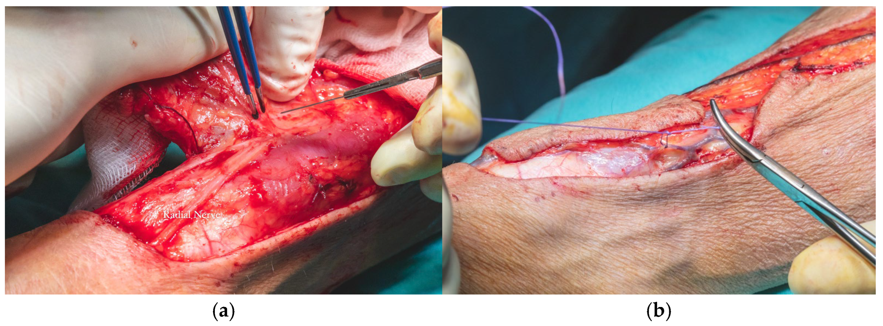 Prior to initiating the skin incision, exsanguination of the left hand and forearm was achieved using an Esmarch bandage, followed by inflation of a pneumatic tourniquet to a pressure approximately 100 mmHg above the patient’s systolic blood pressure to maintain a bloodless operative field. The upper limb was positioned in supination on the operating table, with the shoulder abducted to 90 degrees and the elbow fully extended to facilitate optimal surgical access.