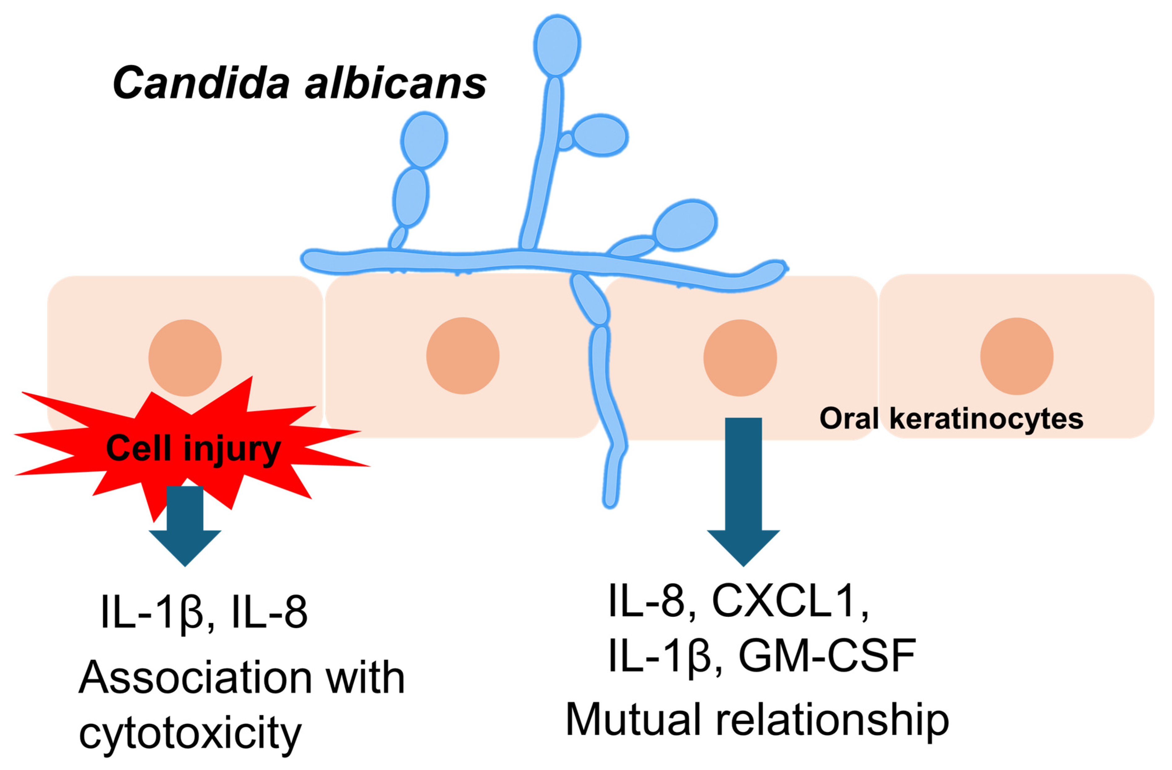 Yano K, Nishi H, Shigeishi H, Kaneyasu Y, Niitani Y, Kitasaki H, Kawaguchi H, Takamoto M, Shiba F, Takemoto T, et al. Relationship Between Virulence Factor Activities, Cytotoxicity of Candida albicans Strains Isolated from Oral Cavity, and Cytokine Production by Oral Keratinocytes Exposed to Those Strains. Dentistry Journal. 2025; 13(11):502. https://doi.org/10.3390/dj13110502