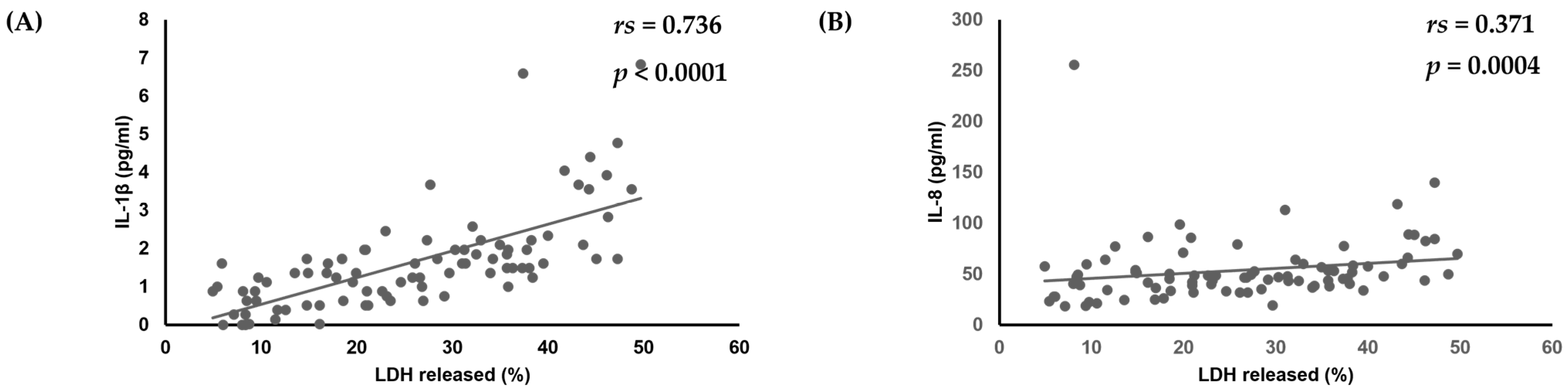 - Kitasaki, H.; Ohta, K.; Akagi, M.; Niitani, Y.; Kaneyasu, Y.; Maehara, T.; Yano, K.; Shiba, F.; Shigeishi, H.; Takemoto, T. Effects of cigarette smoke extract on CXCL8 and CXCL1 expression in oral keratinocytes induced by synthetic bacterial lipoprotein Pam3CSK4. Oral Sci. Int. 2025, 22, e70006. [Google Scholar] [CrossRef]