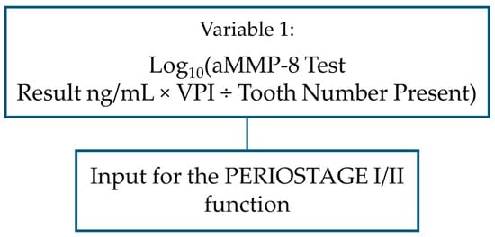 - Penttala, M.; Sorsa, T.; Thomas, J.T.; Grigoriadis, A.; Sakellari, D.; Sahni, V.; Gupta, S.; Pärnänen, P.; Pätilä, T.; Räisänen, I.T. Determination of the Stage of Periodontitis with 20 ng/mL Cut-Off aMMP-8 Mouth Rinse Test and Polynomial Functions in a Mobile Application. Diagnostics 2025, 15, 1411. [Google Scholar] [CrossRef]