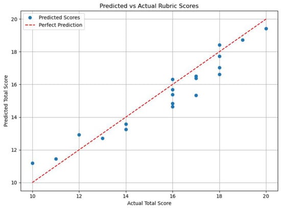 Accuracy was further assessed based on educationally acceptable thresholds: 66.7% of predictions were within ±1 point (±5% of the 20-point total rubric), and 93.3% were within ±2 points (±10%), demonstrating a strong consistency with expert scoring and supporting the model’s early promise. As neural networks improve with larger datasets, accuracy should improve with further training [].