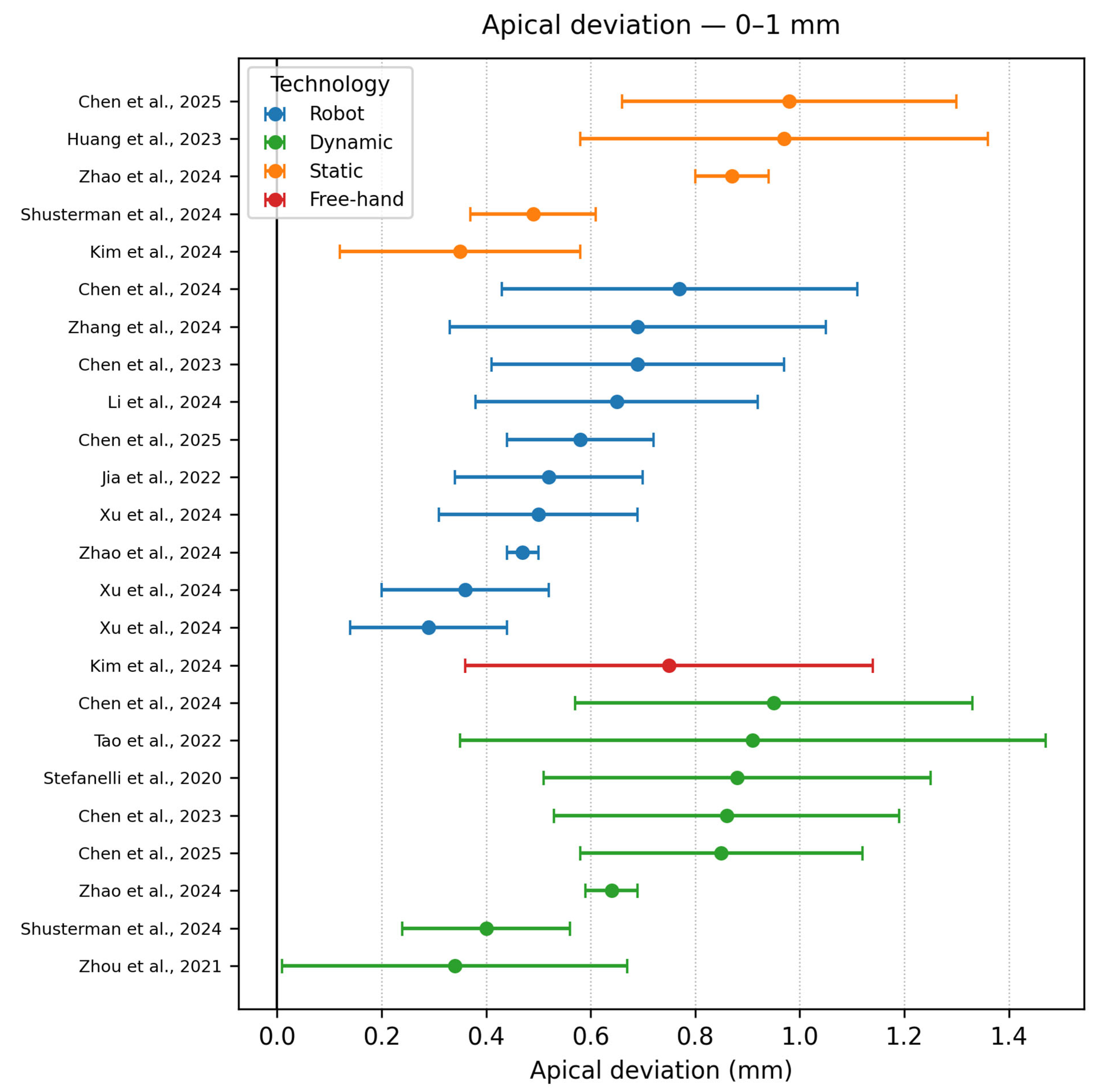 - Apical accuracy 0–1 mm