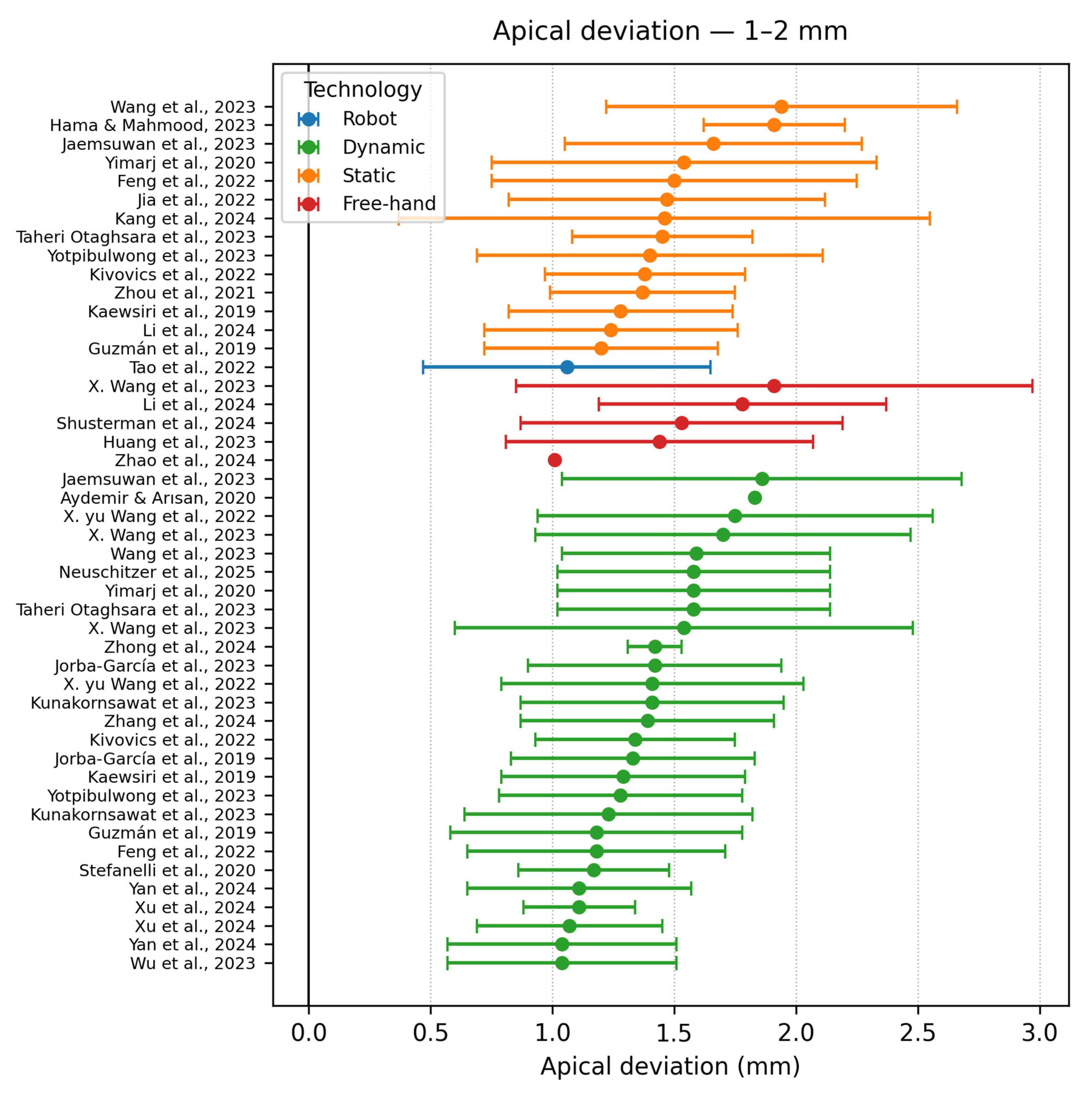 | Jorba-Garcia et al. [48] | In vitro study | DCAIS Freehand | NaviDent EvaluNav | Conv | 2 | 36 | FH: 2.26 ± 1.11 | FH: 1.50 ± 0.58 | FH: 9.7 ± 5.2 |
