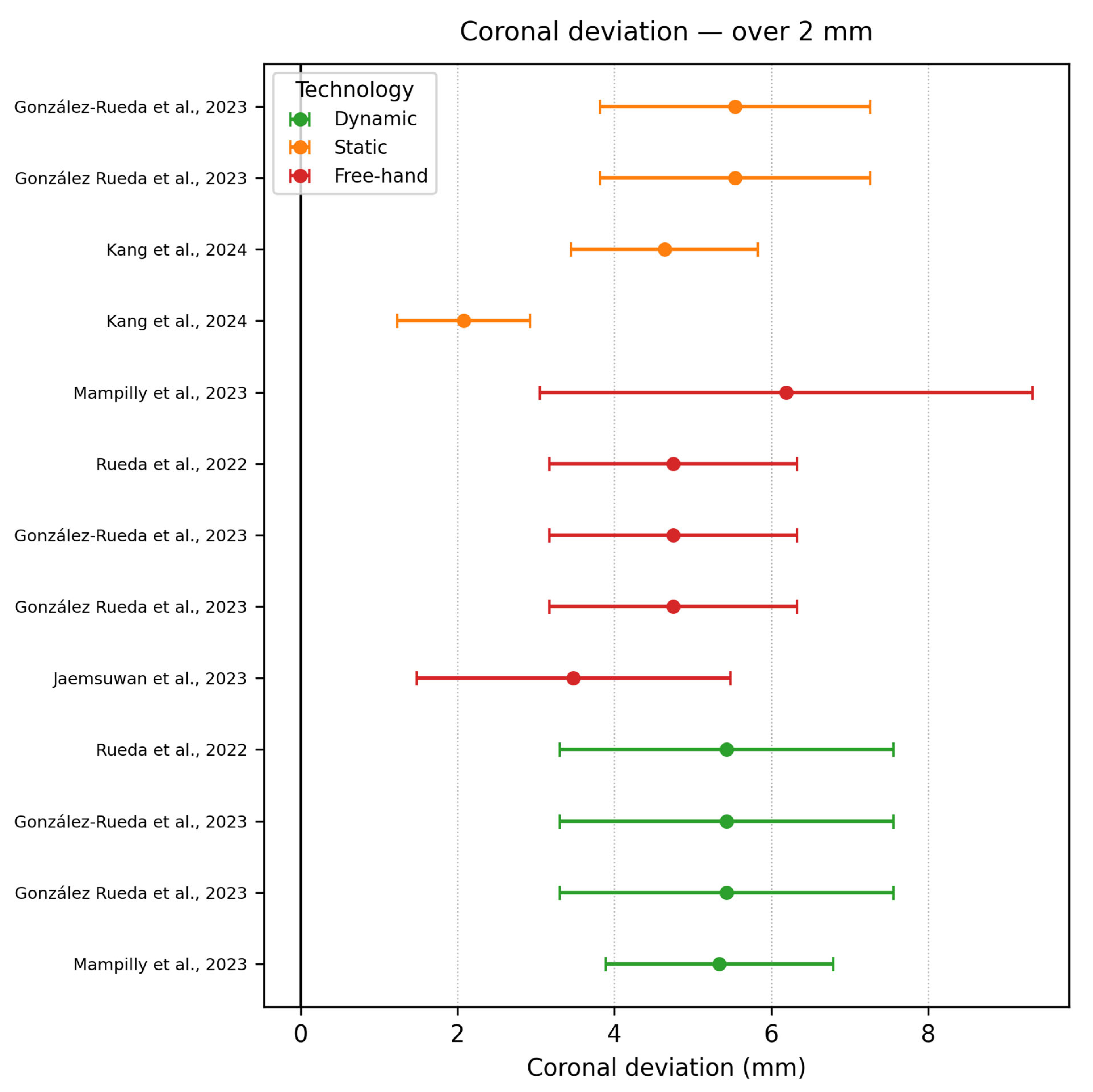 - Coronal deviation ≥ 2 mm