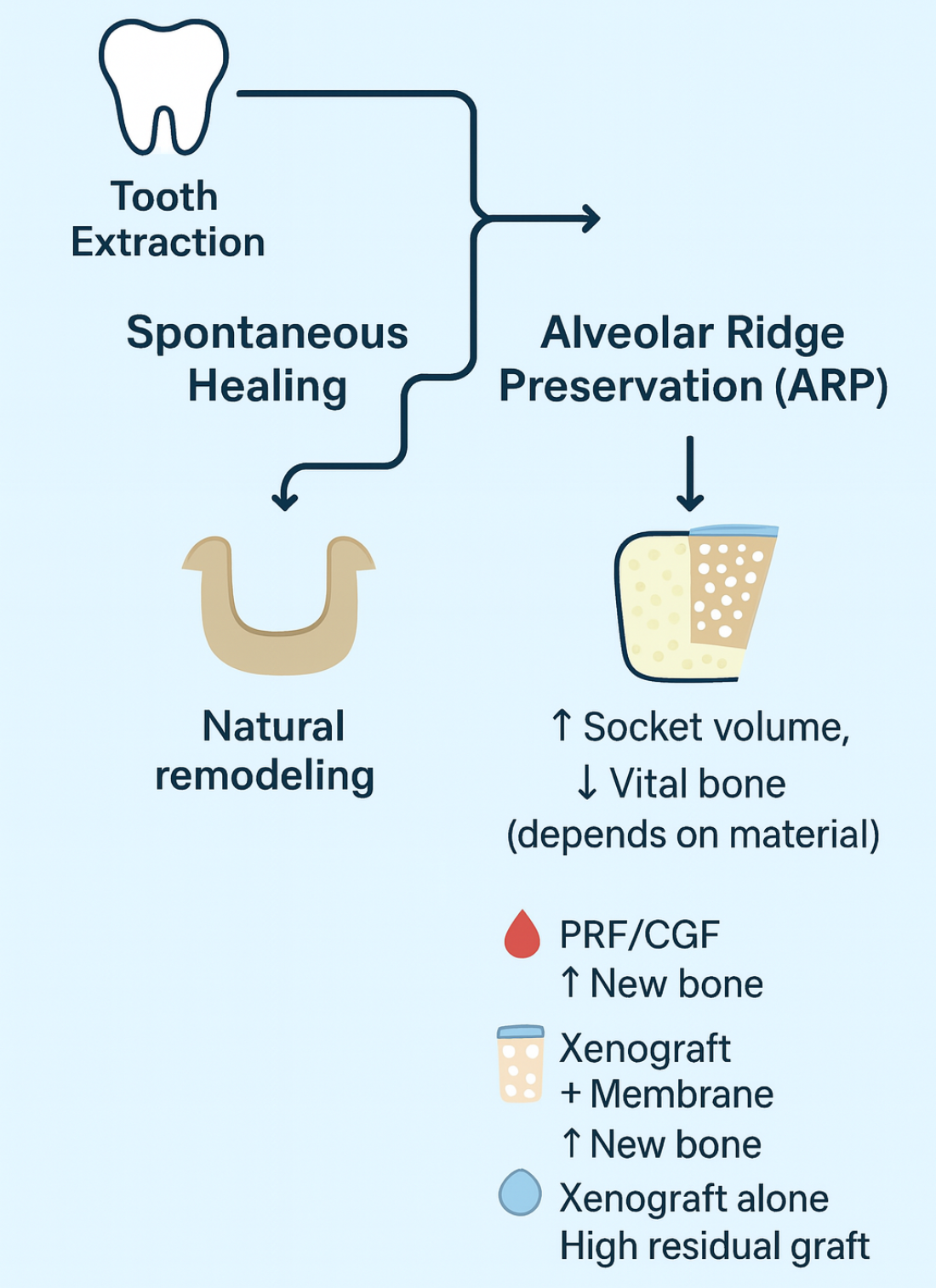 - Intervention (I): alveolar ridge preservation (ARP) using any graft material and/or membrane;