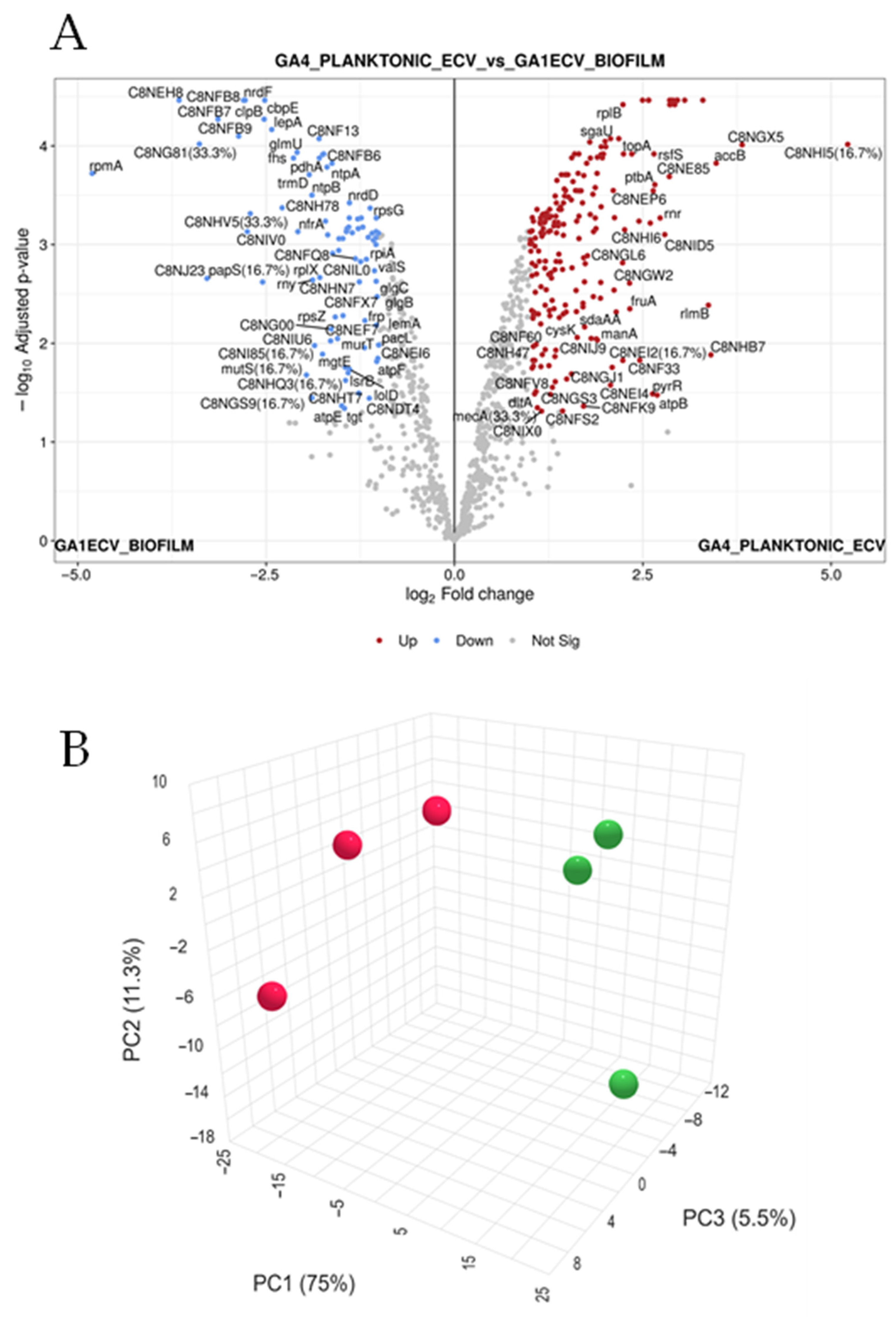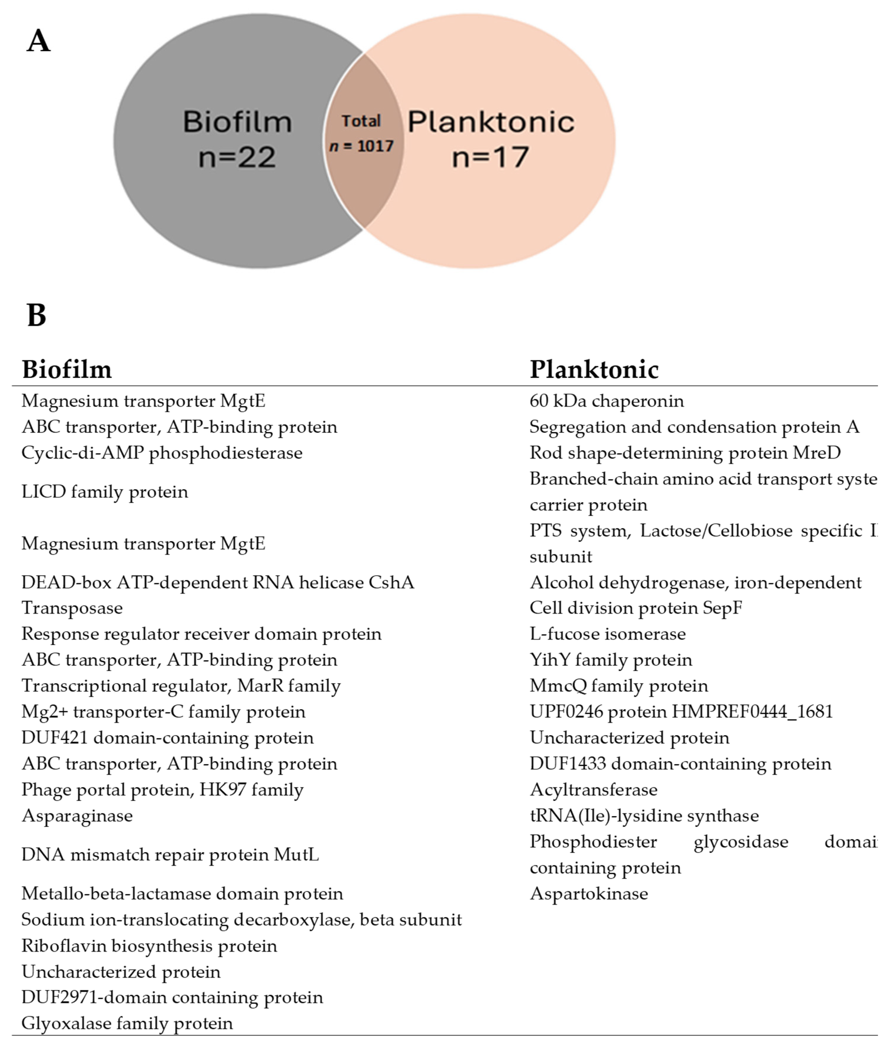 3.2. Differential Protein Expression in Vesicles Produced Under Biofilm and Planktonic Conditions