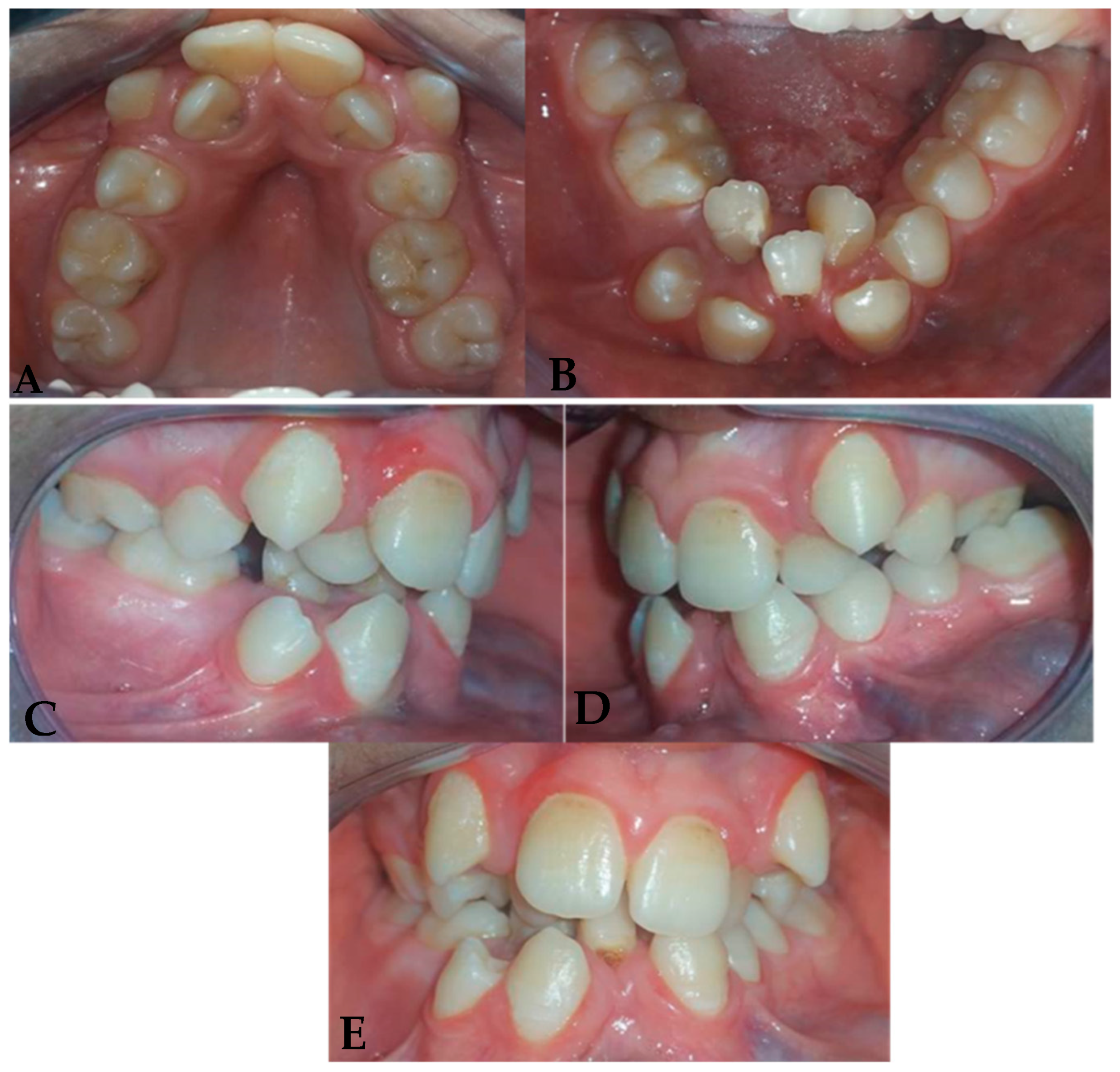 - Interarch relationships: Class III canine and molar relationships characterize a reverse overjet between teeth 26 and 36, with both maxillary and mandibular arches showing endognathia, a hallmark of altered growth patterns.