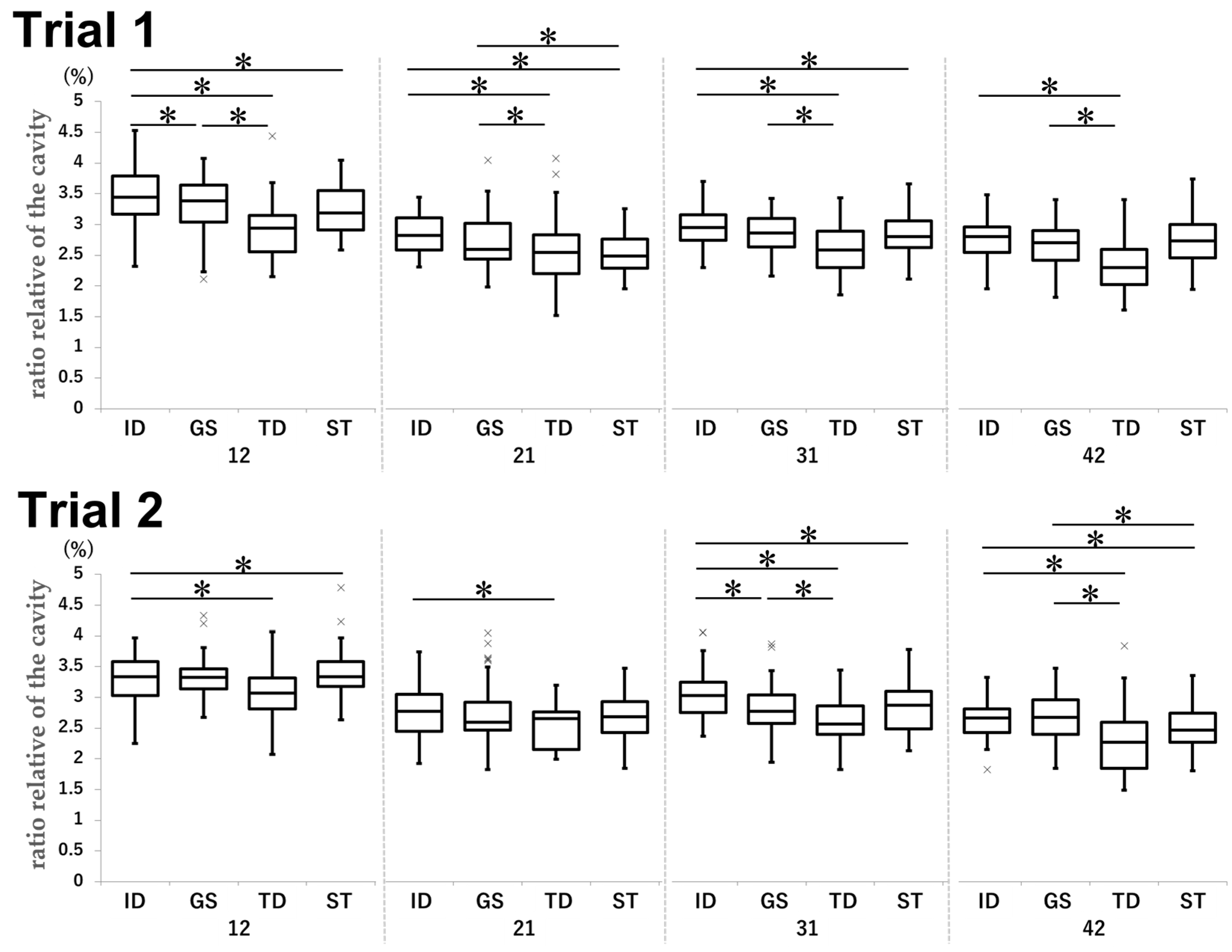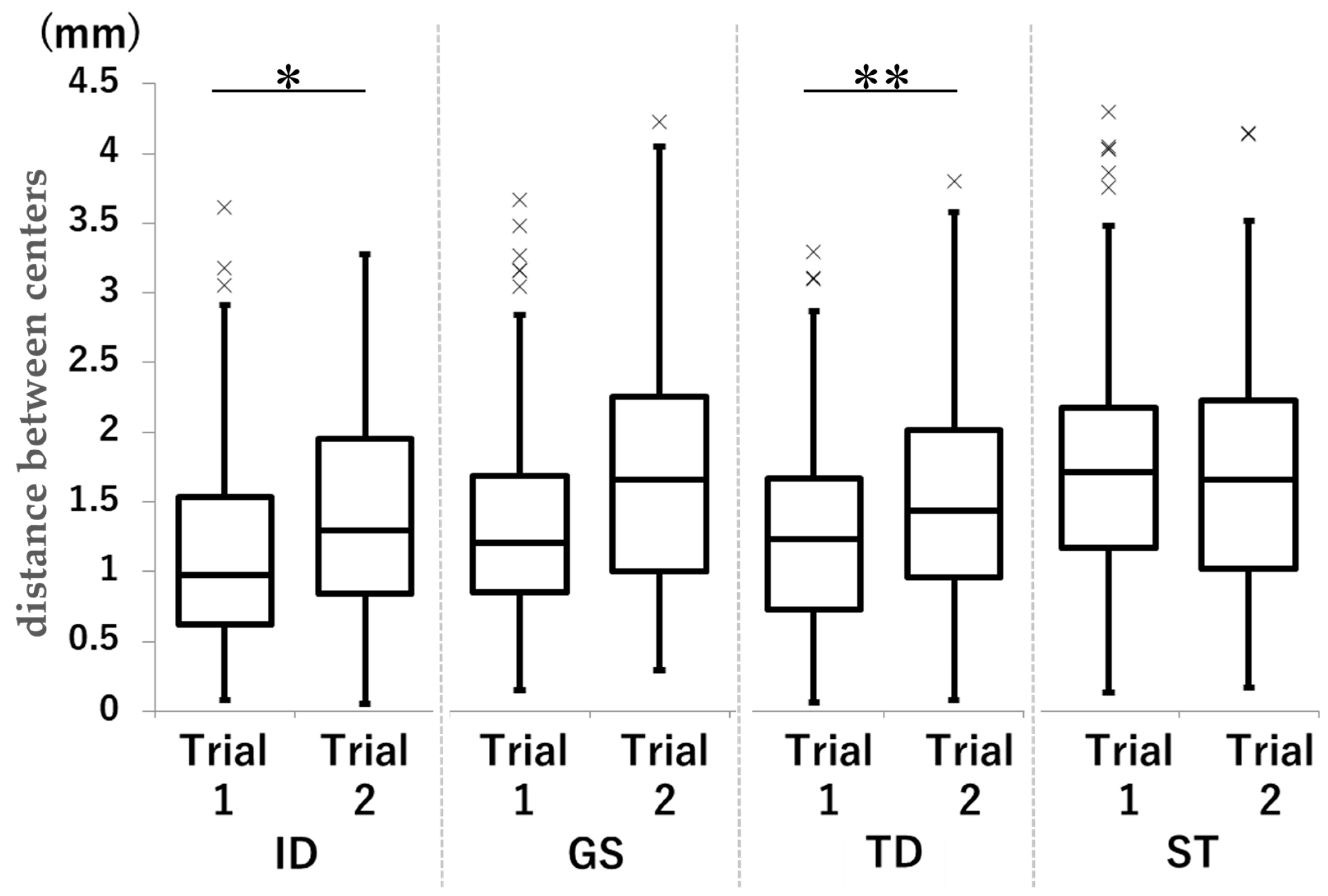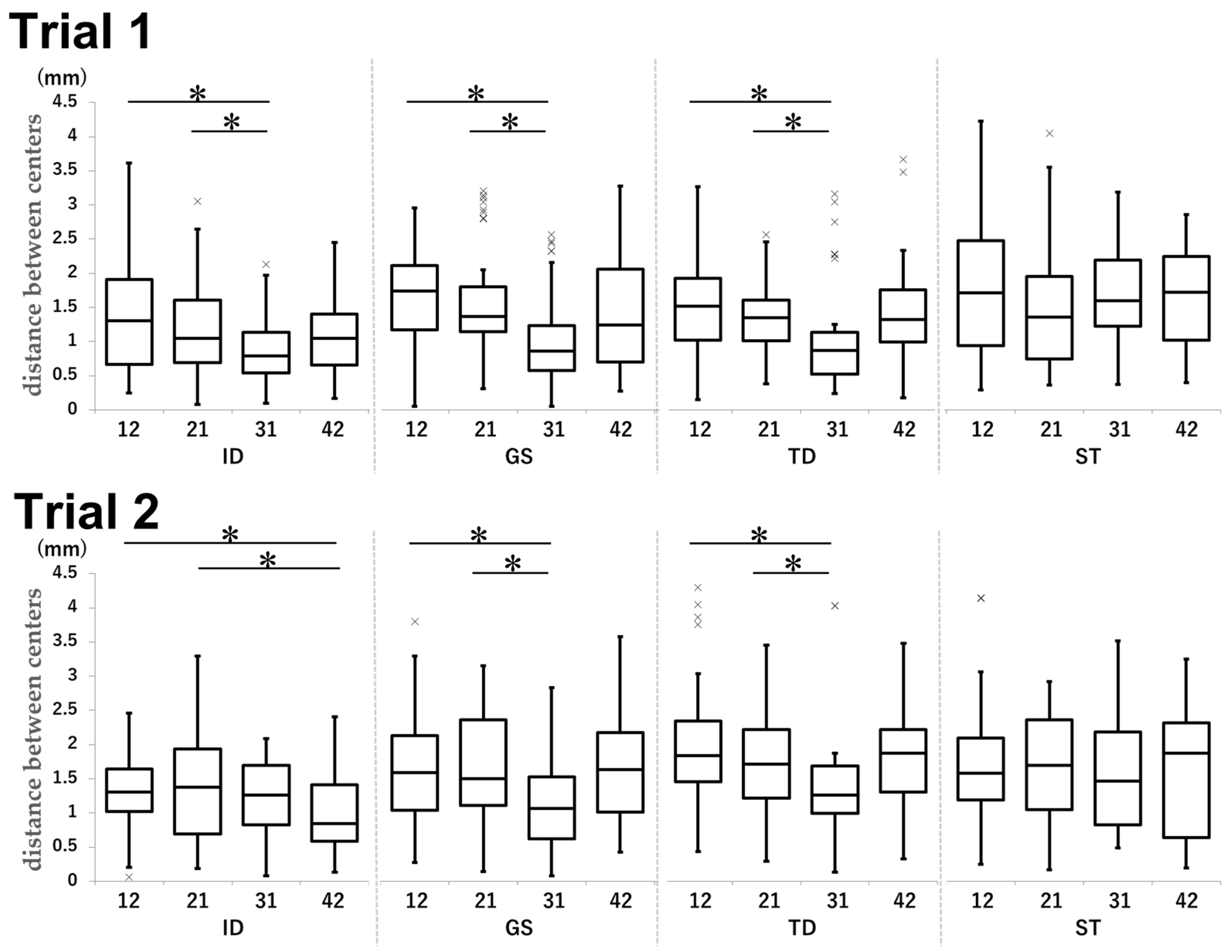 | Trial2 | ① | 5.5 (4.3–6.6) | 6.6 (4.9–9.2) | 4.9 (4.3–6.2) | 6.6 (5.4–8.0) |