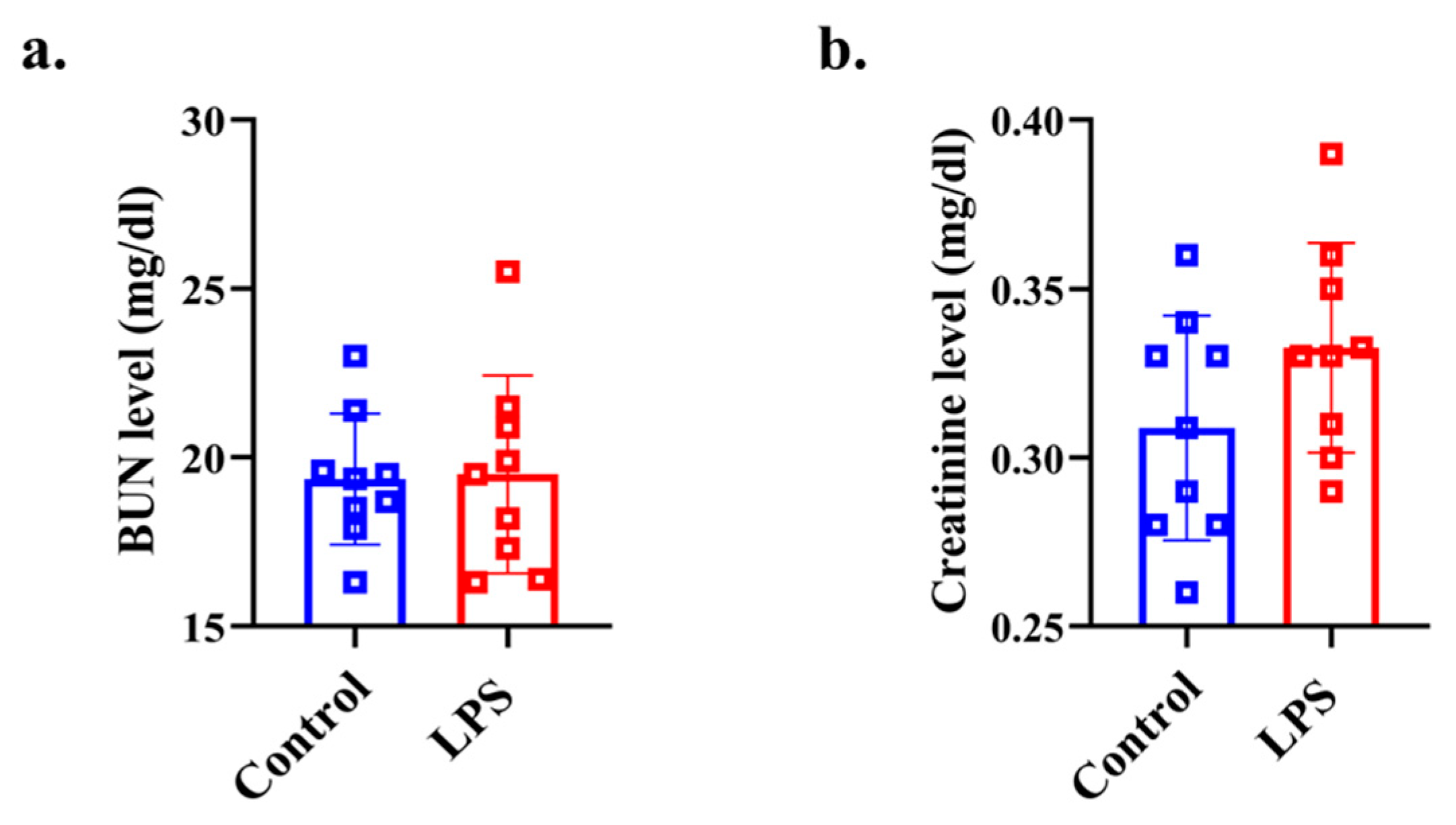 2.7. Plasma Biochemistry Analysis for Assessing Renal Function