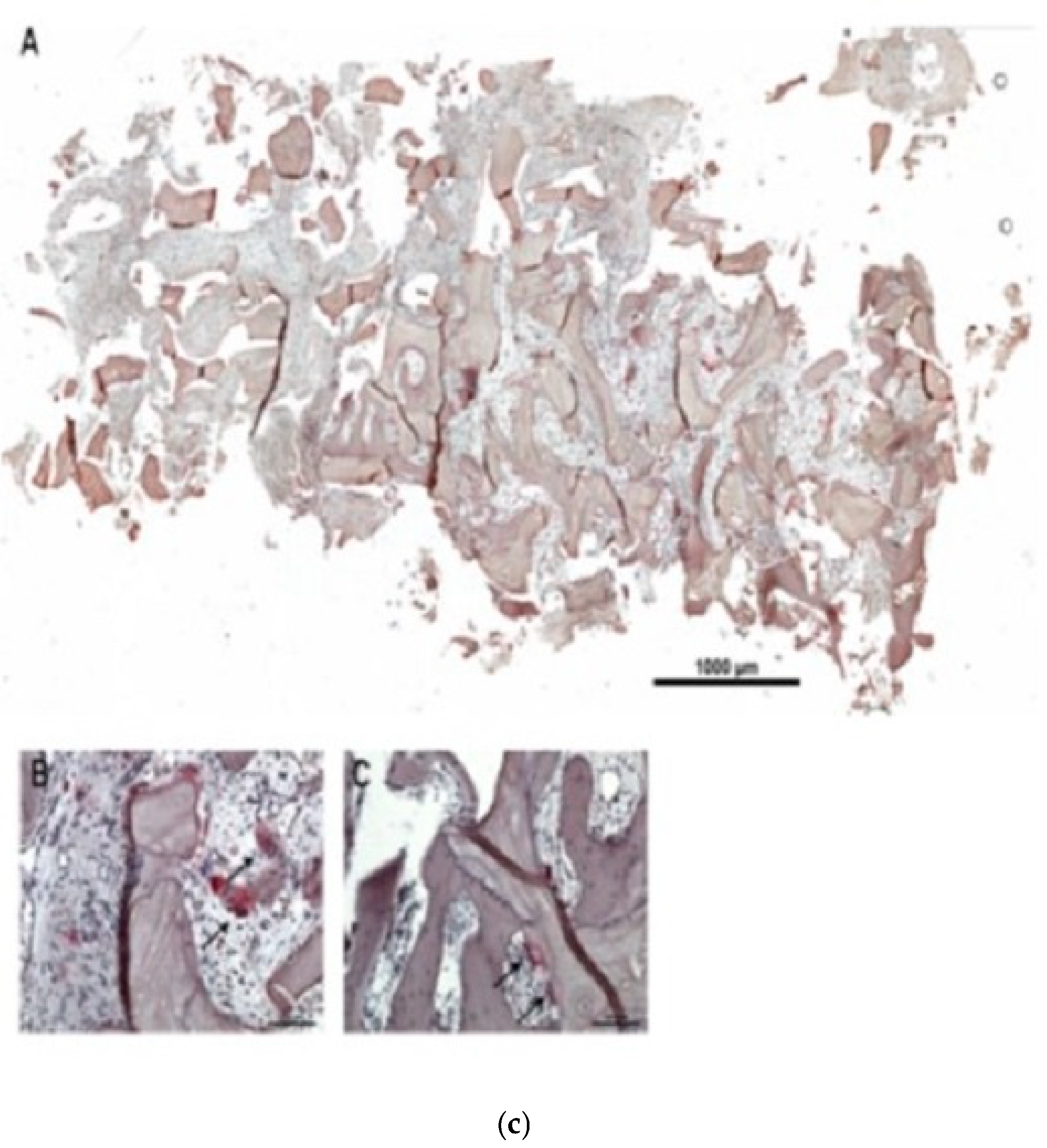 - Miron, R.J.; Sculean, A.; Shuang, Y.; Bosshardt, D.D.; Gruber, R.; Buser, D.; Chandad, F.; Zhang, Y. Osteoinductive potential of a novel biphasic calcium phosphate bone graft in comparison with autographs, xenografts, and DFDBA. Clin. Oral Implant. Res. 2016, 27, 668–675. [Google Scholar] [CrossRef]