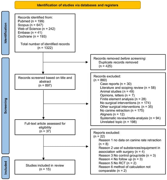 Lipani, E.; Pisani, E.; Verrone, M.; Bitonto, F.; Verdecchia, A.; Spinas, E. Evaluation of the Efficacy of Corticotomy and Piezocision on Canine Retraction: A Systematic Review. Dent. J. 2025, 13, 57. https://doi.org/10.3390/dj13020057