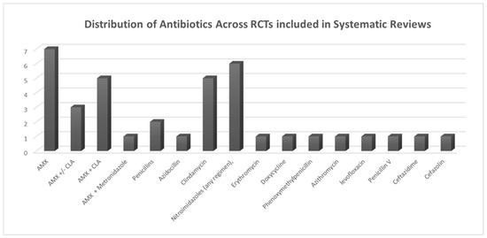 Distribution of antibiotic usage across RCTs included in systematic reviews.