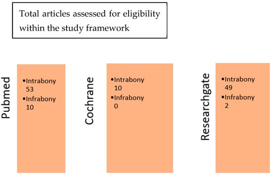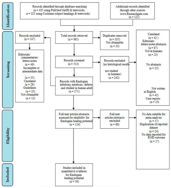 | Emdogain intrabony defects | Studies relevant to the review objectives: intrabony/infrabony defects | Studies involving animal subjects |
