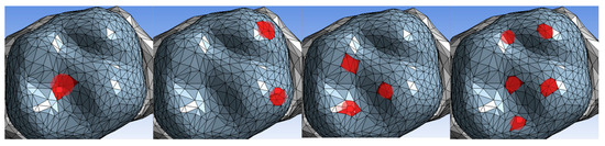 Twenty identical FEM models were generated and meshed in Ansys Workbench (version 18.0, Ansys Inc., Canonsburg, PA, USA) using tetrahedral elements to ensure high resolution. Each model consisted of 100,332 elements and 200,640 nodes. FEM preprocessing also included material property assignment, loading conditions, and boundary constraints [41] (Figure 2).