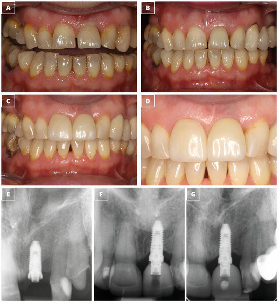 The upper central incisors play a central role in esthetics, symmetry, and function [1]. Replacing a single missing central incisor is always a challenge, as it is noticeable when smiling and it affects facial esthetics. The loss of a central incisor can have psychological implications for patients, often affecting their confidence and overall quality of life [2,3]. Since the upper central incisors receive occlusal forces, careful biomechanical planning is also necessary to prevent technical complications [4]. These considerations highlight the importance of achieving an optimal balance between esthetic and functional requirements to ensure the durability and effectiveness of implant-supported restorations. Meticulous treatment planning and execution are essential to achieve ideal gingival contour, symmetry, and papillary fill between the implant and adjacent teeth [5,6].