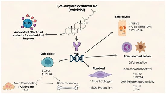 In conclusion, the involvement of vitamin D in periodontal health is multifaceted, encompassing its regulatory effects on alveolar bone homeostasis and mineralization, enhancement of epithelial barrier function against microbial insult, and modulation of the immune response. Furthermore, vitamin D exhibits direct antimicrobial effects and downregulates pro-inflammatory signaling pathways within the periodontal microenvironment [44].