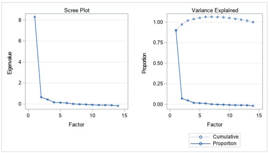 In this study, factor analysis (FA) with oblique rotation was conducted to explore the underlying factor structure of the OHIP questionnaire set, assuming the presence of correlations among these items [28]. An individual item’s factor loading was considered substantial if its absolute value exceeded 0.50. Kaiser’s measure was used to assess the measure of sampling adequacy (MSA), with values between 0.8 and 1 indicating adequacy [29]. All statistical analyses were performed using the Statistical Analysis System (SAS, version 9.4, Cary, NC, USA), with a significance level of 0.05.