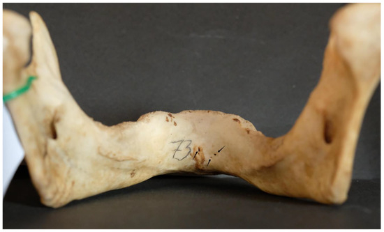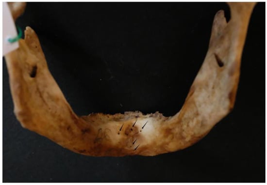 The majority of the mandibles examined (92; 95.8% of the sample) had multiple lingual foramina (up to nine) (Figure 4 and Figure 5).