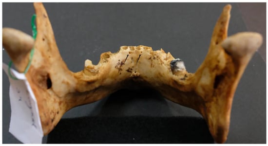 The foramina located on the posterior surface of the mandible between the first premolars were included in the analysis. The number of lingual foramina was determined through careful inspection of the lingual surface under natural daylight. Their diameters were measured using flexible stainless-steel wires with a diameter increasing from 0.2 mm to 1.2 mm, in steps of 0.1 mm (UA218893; Zhejiang, China), as described elsewhere [5]. Any foramen with a diameter smaller than 0.2 mm was not recorded. If a wire could not be inserted into a foramen, its diameter (di) was recorded as the next smallest available size. As such, the absolute maximum error (de) introduced in each measurement is 0.1 mm, while the mean relative error is represented by the mean of the ratios de/(di + de) for every i-th foramen.