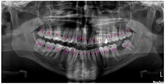 AI has been applied to improve the analysis of dental radiographic images. In the context of two-dimensional (2D) radiographs, these digital images consist of numerous pixels, each with different levels of brightness and radiopacity. AI systems are trained to interpret these images by learning from these pixel-based features [26,27]. Recent advances in AI have shown promise in medical imaging; a deep learning algorithm capable of automatically detecting teeth in panoramic radiographs is regarded as a significant advancement in dental practice [28,29]. Also, lesion diagnosis using AI and automatic description of anatomic landmarks showed great results in terms of AI and panoramic radiographs [26,30,31].