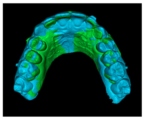 Figure 6. Superimposition of initial and final STL models using palatal rugae.