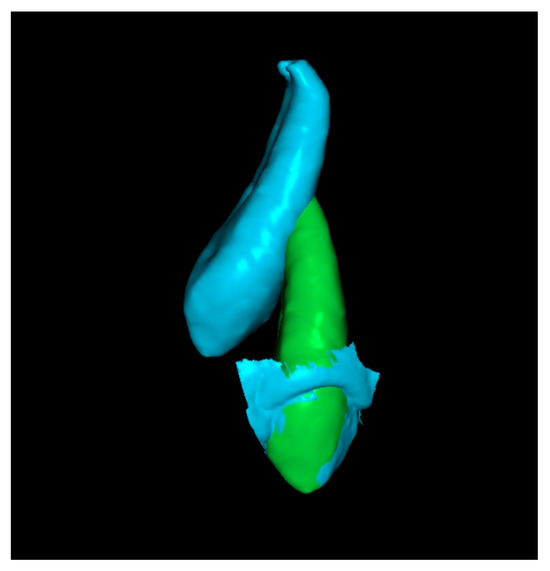 Since orthodontic traction had not yet started, the position of the teeth remained unchanged between scans, allowing precise registration. As a result, the initial STL was effectively combined with the three-dimensional position of the IC derived from the CBCT (Figure 5).