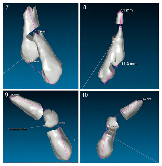 The previous models of the initial and final canines were isolated and saved as separate STL files. Displacement measurements of the cusp and apex were then performed using the RealGUIDE 5.3® software (Figure 9). All evaluations and measurements were performed in a blinded manner, with the primary evaluator unaware of patient identities throughout the study. The entire assessment process was conducted by a single author and was continuously supervised and reviewed by a second author. A high level of agreement was consistently observed, supporting the reliability of the methodology.