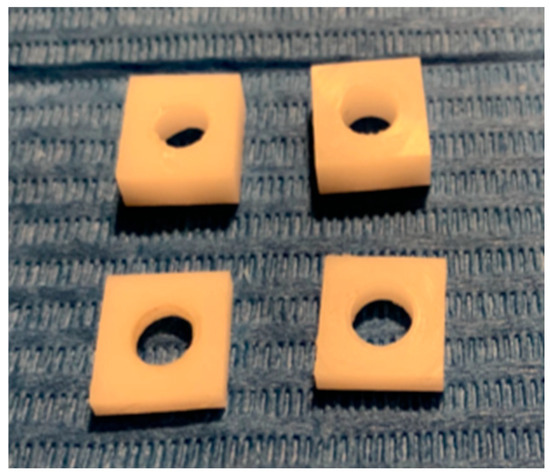 In this experimental study, four shades of a low-viscosity self-adapting bulk-fill material, SDR®flow+ (Dentsply-Caulk, Milford, DE, USA), were tested: Universal (U), A1, A2, and A3 (Table 1). The study followed the CRIS Guidelines (Checklist for Reporting In-Vitro Studies). To minimize variability and operator-dependent bias, all specimen preparations were performed by the same operator (F.M.). Specimens were prepared using cylindrical polyvinyl molds with a diameter of 6 mm and different heights of 2 mm and 4 mm (Figure 1a,b and Figure 2). The upper surface was covered with a Mylar strip and lightly pressed with a glass slide to remove excess material and obtain a smooth, flat surface. The Mylar strip prevented the formation of an oxygen-inhibited layer.