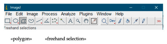 The selection of an image area for analysis was performed using the «polygon» and «freehand selection» tools (Figure 2).