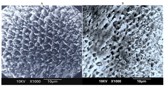 A classic study by Stern et al. [] suggested that this effect results from decreased enamel permeability due to the fusion and to the disappearance of the preferred pathways for penetration and progression of acid through the enamel structure via the interprismatic and intercrystallite spaces. Similarly, Lenz et al. [] reported findings that support this explanation. According to this hypothesis, laser irradiation enhances acid resistance by altering the enamel surface, without necessarily reducing its solubility. In a related theory, Yamamoto [] proposed that the reduced permeability is due to the disintegration of the organic matrix around the prisms in fused enamel. Moreover, the elimination of water-containing organic enamel components during heating removes a potential pathway for hydrogen ion (H+) penetration. This idea is further supported by the findings of Sato et al. [].