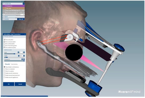 The virtual articulator (Artex CR; AmannGirrbach, Koblach, Austria) was then aligned within the software based on two main references: