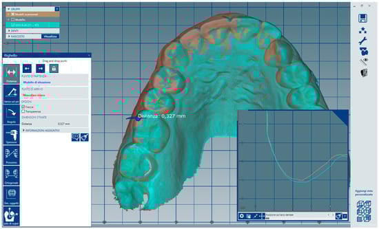 In contrast, the orientation phase of the dental arches within the virtual articulator, specifically the alignment of the two facebow markers with the corresponding markers on the digital articulator, can be considered operator-dependent, as it involved manual positioning of the scans (Figure 7 and Figure 8).