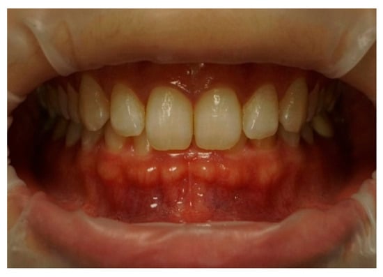 - Indurkar, M.S.; Abinesh, M. Clinical study of assessment of gingiva in smile designing. Int. J. Adv. Res. 2017, 5, 975–979. [Google Scholar] [CrossRef]