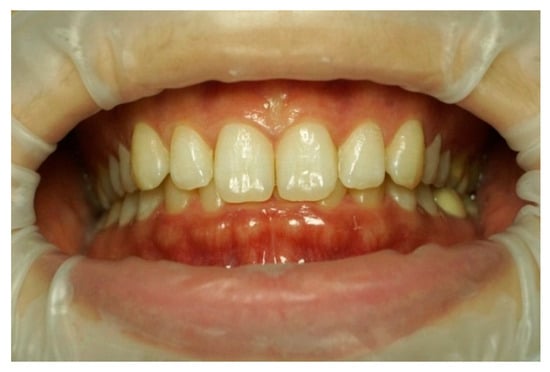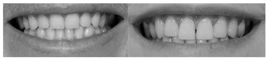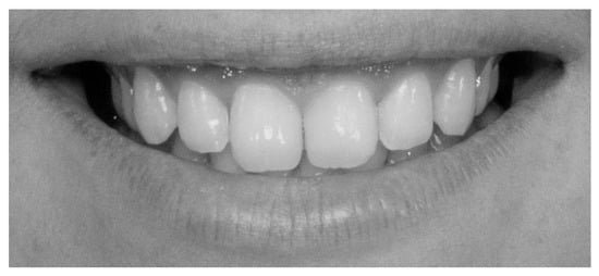 - Parrini, S.; Rossini, G.; Castroflorio, T.; Fortini, A.; Deregibus, A.; Debernardi, C. Laypeople’s perception of frontal smile esthetics: A systematic review. Am. J. Orthod. Dentofac. Orthop. 2016, 150, 740–750. [Google Scholar] [CrossRef]