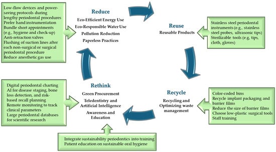 3.3. Sustainable Dental and Periodontal Practice: 4R Framework—Reduce, Reuse, Rethink, and Recycle