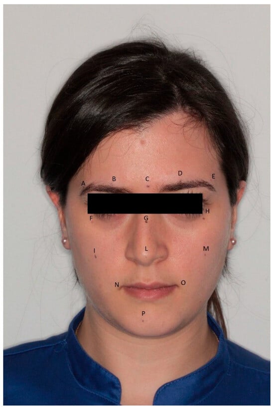 - Menendez Lopez-Mateos, M.L.; Carreno-Carreno, J.; Palma, J.C.; Alarcon, J.A.; Menendez Lopez-Mateos, C.; Menendez-Nunez, M. Three-dimensional photographic analysis of the face in European adults from southern Spain with normal occlusion: Reference anthropometric measurements. BMC Oral Health 2019, 19, 196. [Google Scholar] [CrossRef]
