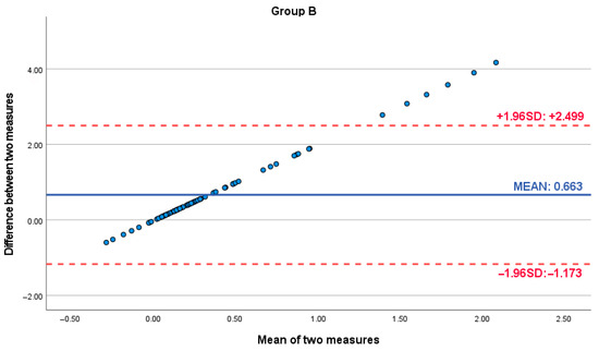 | Differences in Pairs—Group B | Paired t-Test | p-Value | ||||||
