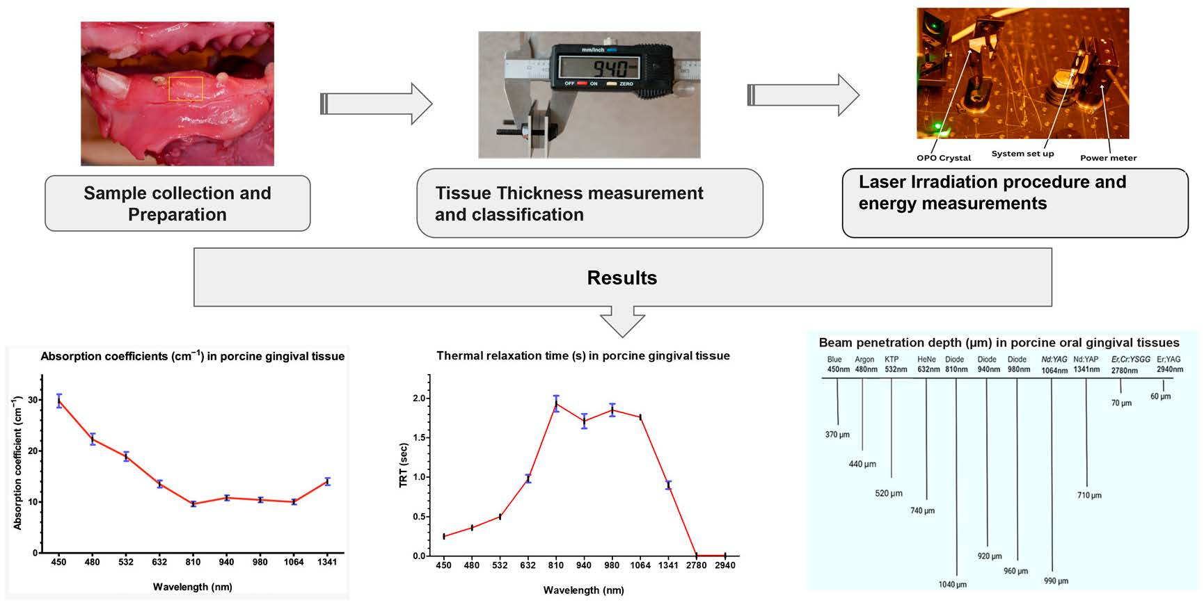 13], few have focused specifically on the absorption characteristics of different laser wavelengths in oral gingival mucosa. This lack of data limits our ability to optimize laser parameters for clinical dental applications. This study addresses that gap by providing quantitative absorption, penetration depth, and thermal relaxation time data across commonly used wavelengths in dentistry.