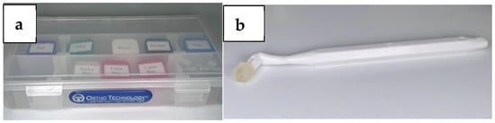 (a) Mini-Mold starter kit; (b) Mini-Mold tip handle with 5 mm bite ramp tip.
