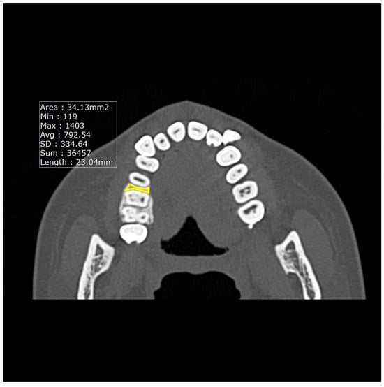 - Deguchi, T.; Nasu, M.; Murakami, K.; Yabuuchi, T.; Kamioka, H.; Takano-Yamamoto, T. Quantitative evaluation of cortical bone thickness with computed tomographic scanning for orthodontic implants. Am. J. Orthod. Dentofac. Orthop. 2006, 129, 721.e7–721.e12. [Google Scholar] [CrossRef] [PubMed]