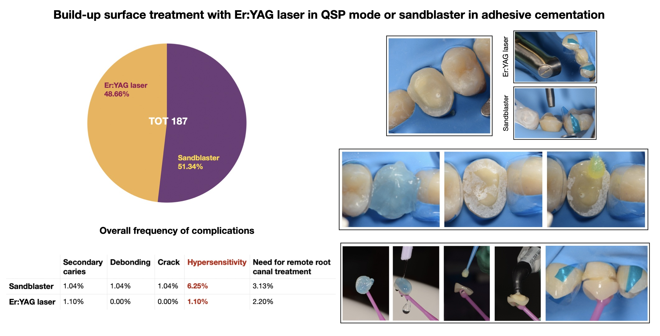 Er:YAG Laser Versus Sandblasting for Build-Up Conditioning in Adhesive Cementation: A Retrospective Study of 187 Posterior Indirect Restorations