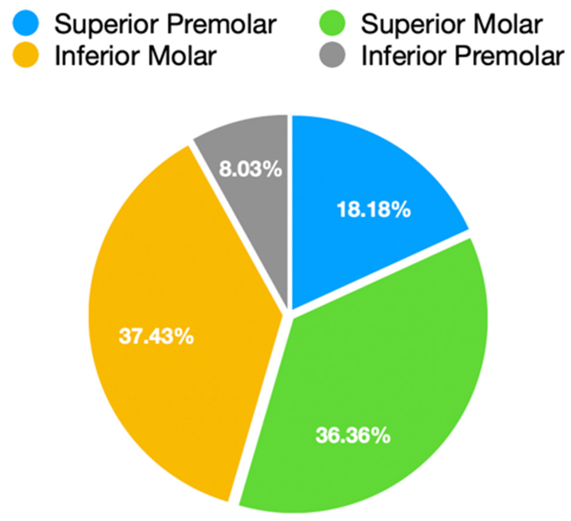 | • Lower molar | 21 (21.9%) | 17 (18.7%) | 79 | |