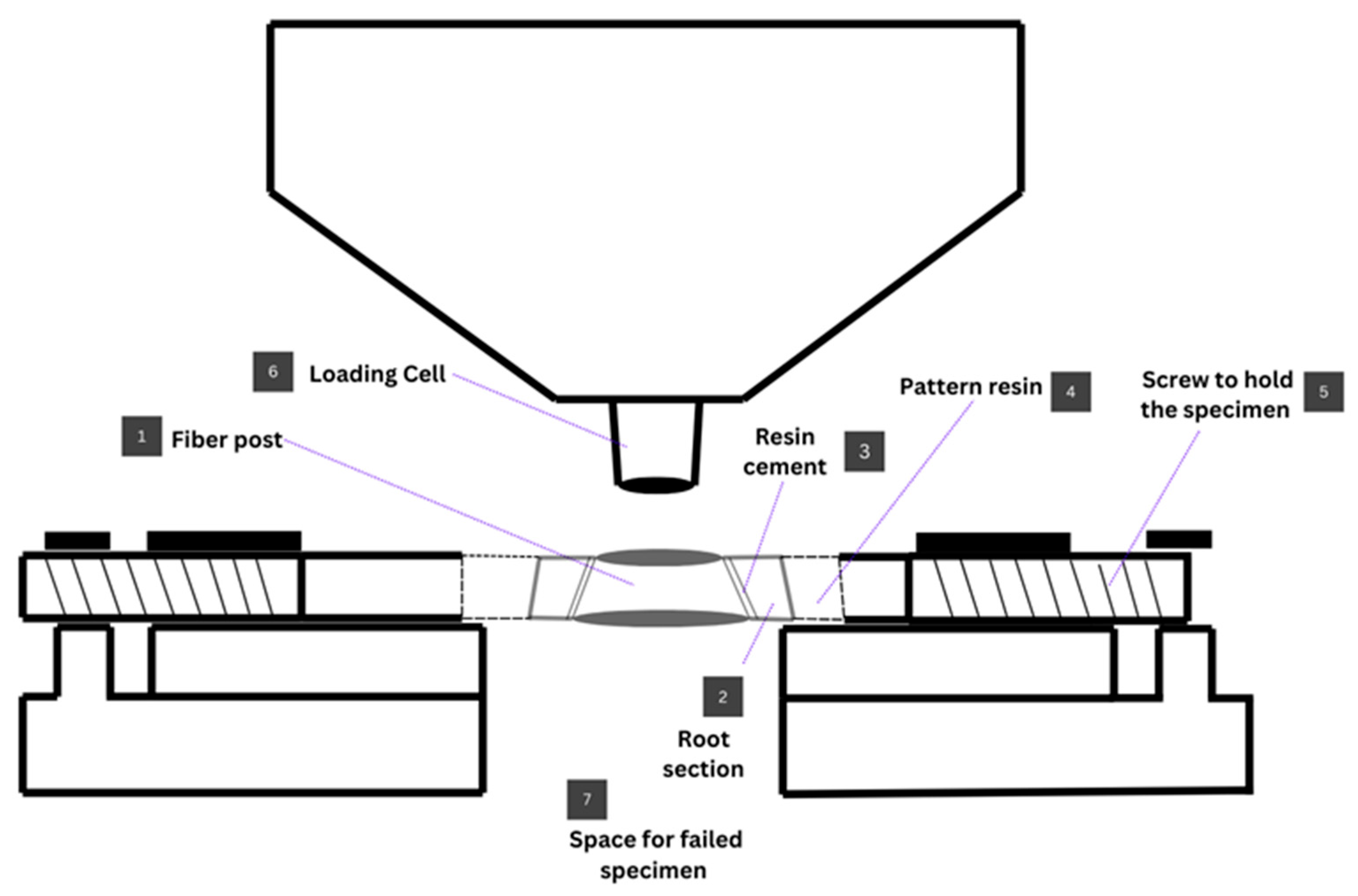 The present in vitro study had some limitations. First, the in vitro design does not fully replicate the complex biological and mechanical conditions present in the oral environment. Additionally, only a single type of fiber post and luting cement was evaluated, which limits the generalizability of the findings. Moreover, the assessment of failure modes involved a degree of subjectivity, which may influence the interpretation of results.
