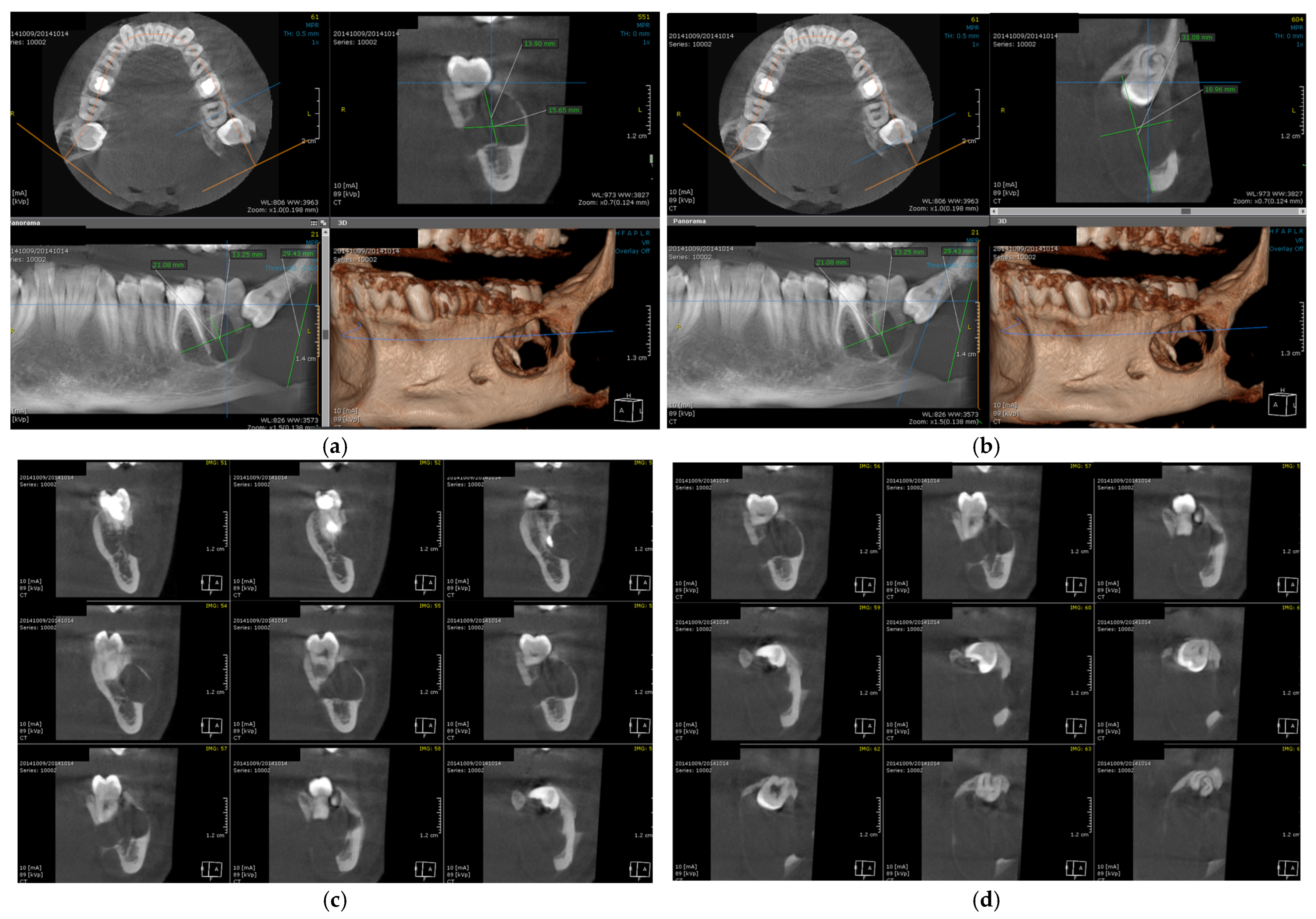 - Kwon, Y.; Fang, Y.-Q.; Lee, S.; Lee, C. Spontaneous Osteogenic Potential of Periosteum after Segmental Mandibulectomy in Patients with Medication-Related Osteonecrosis of the Jaw (MRONJ): A Retrospective Study of 14 Cases. Appl. Sci. 2023, 13, 5426. [Google Scholar] [CrossRef]