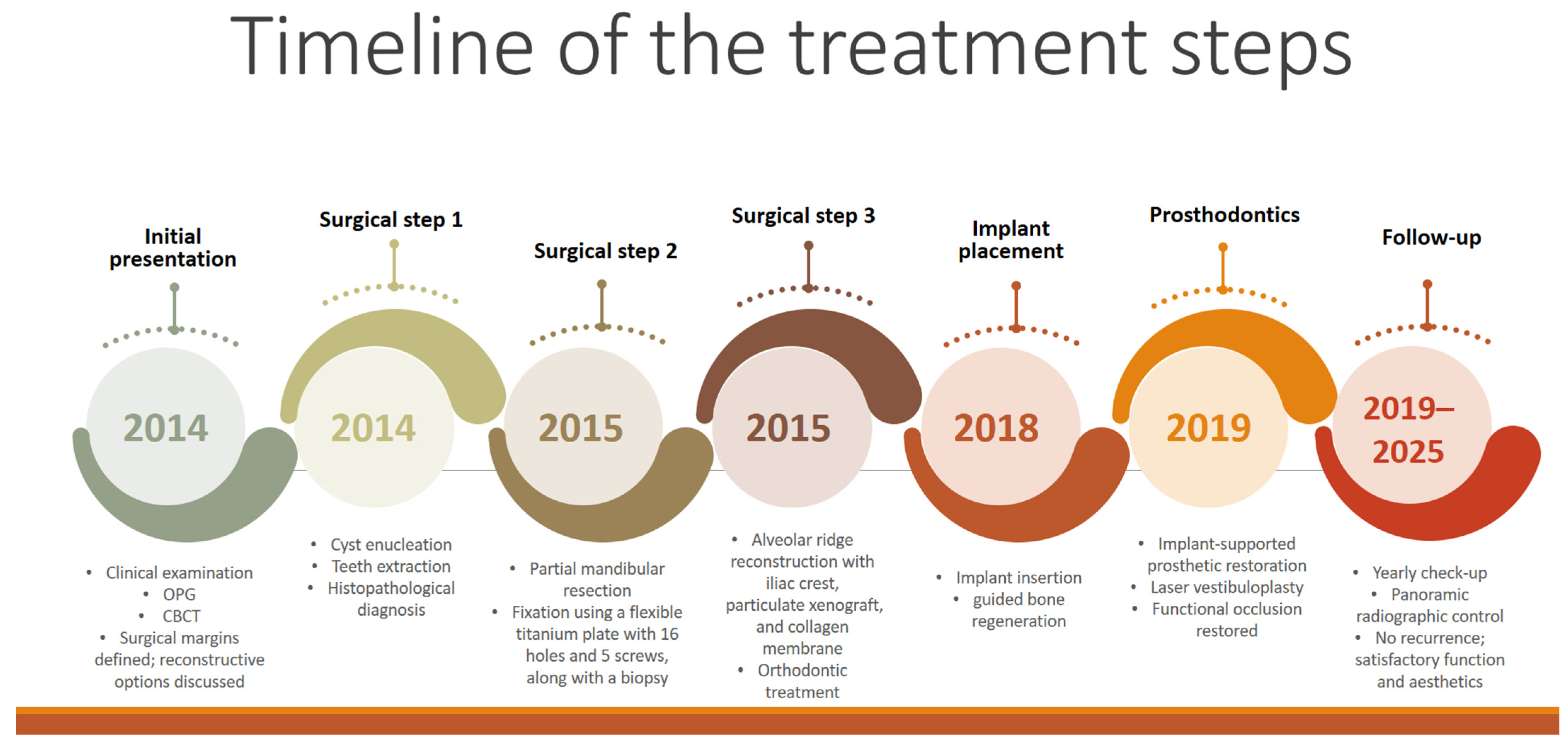 - Moreno-Soriano, C.; Estrugo-Devesa, A.; Castañeda-Vega, P.; Jané-Salas, E.; López-López, J. Postsurgical Prosthetic Rehabilitation after Mandibular Ameloblastoma Resection: A 7-Year Follow-Up Case Report. Case Rep. Dent. 2021, 2021, 5593973. [Google Scholar] [CrossRef] [PubMed] [PubMed Central]